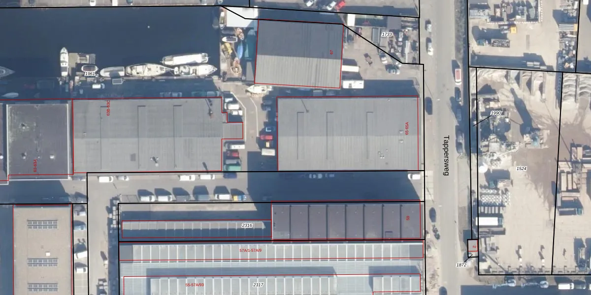 Tappersweg 65-B is gelegen op kadastraal perceel HLM02N1961. Deze kadastrale aanduiding is uniek en wordt gebruikt door het Kadaster om eigendomsrechten en andere zakelijke rechten vast te leggen. Het perceel maakt onderdeel uit van de kadastrale gemeente Haarlem.