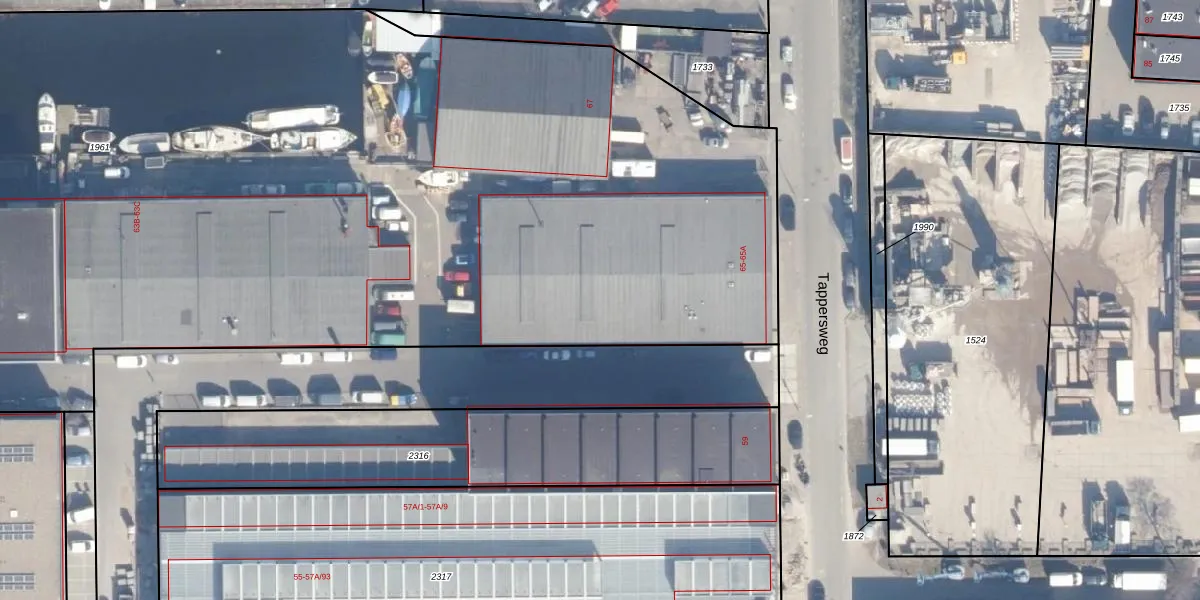 Tappersweg 65-D is gelegen op kadastraal perceel HLM02N1961. Deze kadastrale aanduiding is uniek en wordt gebruikt door het Kadaster om eigendomsrechten en andere zakelijke rechten vast te leggen. Het perceel maakt onderdeel uit van de kadastrale gemeente Haarlem.