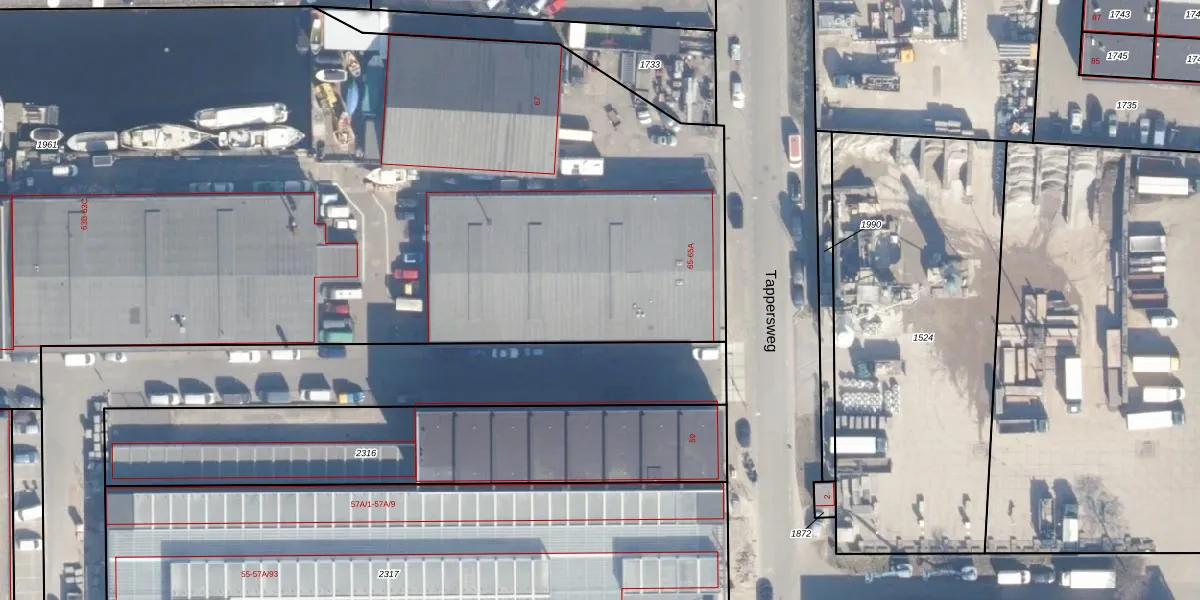 Tappersweg 65-E is gelegen op kadastraal perceel HLM02N1961. Deze kadastrale aanduiding is uniek en wordt gebruikt door het Kadaster om eigendomsrechten en andere zakelijke rechten vast te leggen. Het perceel maakt onderdeel uit van de kadastrale gemeente Haarlem.