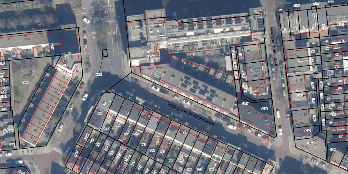 Teding van Berkhoutstraat 5 is gelegen op kadastraal perceel HLM02P3465. Deze kadastrale aanduiding is uniek en wordt gebruikt door het Kadaster om eigendomsrechten en andere zakelijke rechten vast te leggen. Het perceel maakt onderdeel uit van de kadastrale gemeente Haarlem.