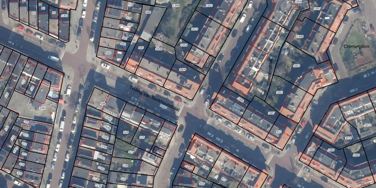 Teding van Berkhoutstraat 67 is gelegen op kadastraal perceel HLM02P3409. Deze kadastrale aanduiding is uniek en wordt gebruikt door het Kadaster om eigendomsrechten en andere zakelijke rechten vast te leggen. Het perceel maakt onderdeel uit van de kadastrale gemeente Haarlem.