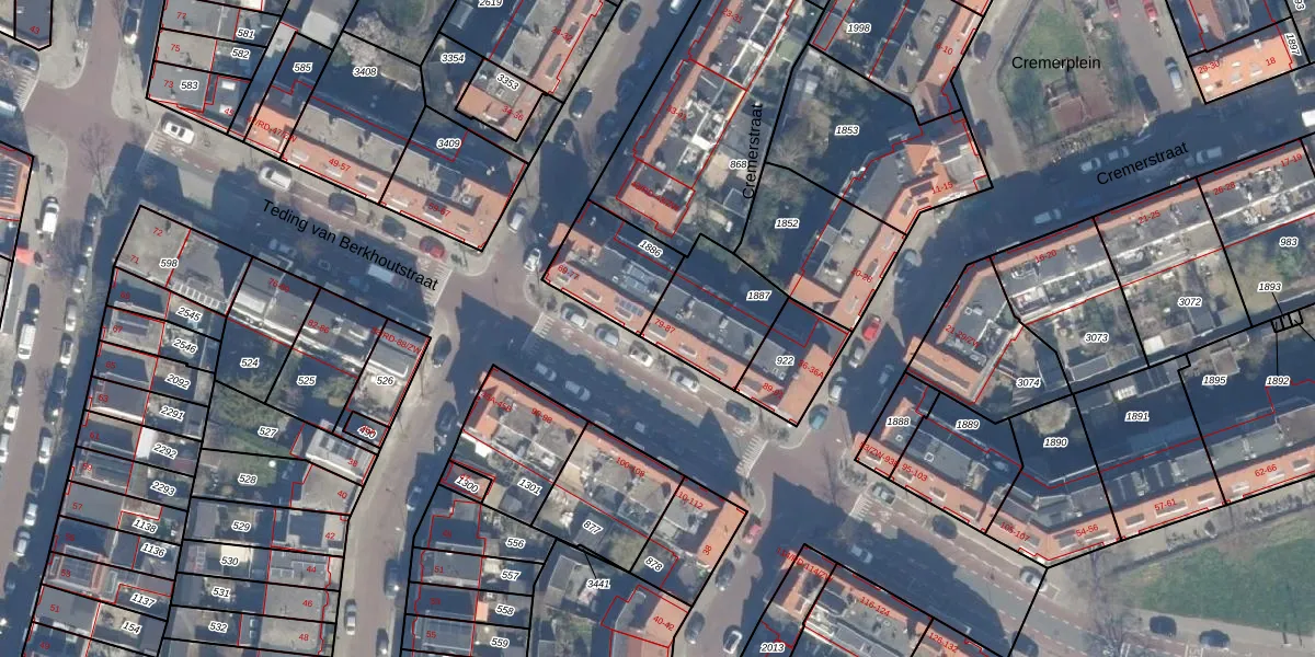 Het adres ligt op het perceel HLM02-P-1887, dat zich in de kadastrale gemeente Haarlem bevindt. De gemiddelde perceelgrootte in Haarlem is 1125,79 m². Dit perceel is kleiner: de perceeloppervlakte bedraagt 293 m². De grootste perceeloppervlakte in de kadastrale gemeente is 46,4 ha. De kleinste oppervlakte bedraagt 0 m². Op het perceel zijn 5 adressen aanwezig. De huidige grenzen van het perceel zijn digitaal in de Basisregistratie Kadaster (BRK) geregistreerd op 18-09-2001.