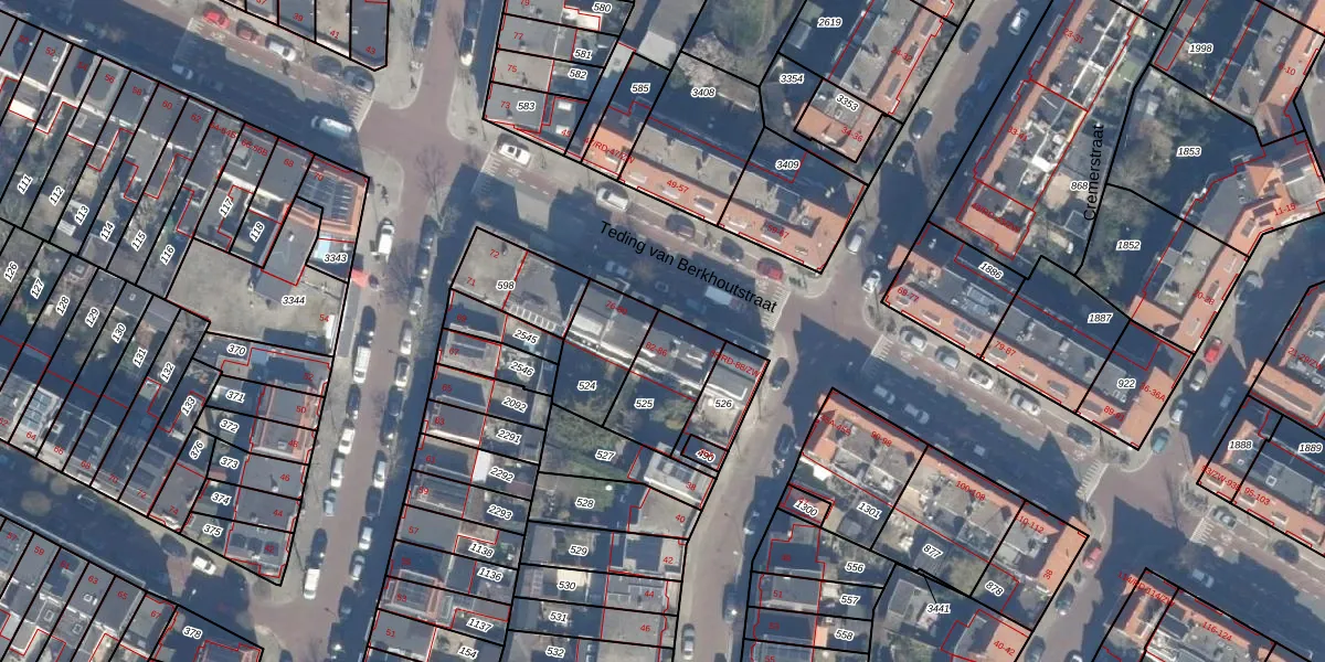 Teding van Berkhoutstraat 82 is gelegen op kadastraal perceel HLM02P525. Deze kadastrale aanduiding is uniek en wordt gebruikt door het Kadaster om eigendomsrechten en andere zakelijke rechten vast te leggen. Het perceel maakt onderdeel uit van de kadastrale gemeente Haarlem.
