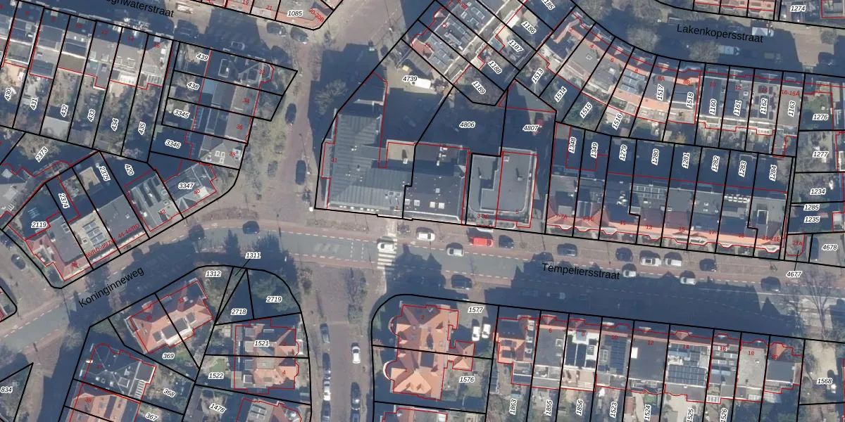 Het perceel waarop Tempeliersstraat 1 staat heeft een oppervlakte van 478 m². Dit is een groot perceel. De perceeloppervlakte wordt geregistreerd door het Kadaster. Gedetailleerde informatie over de maten van dit perceel kunt u vinden in het rapport Kadastrale kaart met maatvoering van Tempeliersstraat 1.
