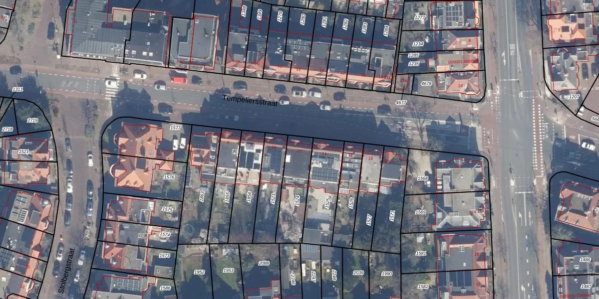 Het perceel waarop Tempeliersstraat 12 staat heeft een oppervlakte van 329 m². Dit is een groot perceel. De perceeloppervlakte wordt geregistreerd door het Kadaster. Gedetailleerde informatie over de maten van dit perceel kunt u vinden in het rapport Kadastrale kaart met maatvoering van Tempeliersstraat 12.