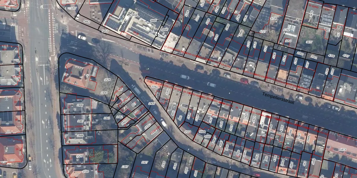 Het perceel waarop Tempeliersstraat 26 staat heeft een oppervlakte van 98 m². Dit is een klein perceel. De perceeloppervlakte wordt geregistreerd door het Kadaster. Gedetailleerde informatie over de maten van dit perceel kunt u vinden in het rapport Kadastrale kaart met maatvoering van Tempeliersstraat 26.