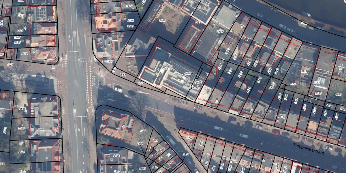 Het perceel waarop Tempeliersstraat 33 staat heeft een oppervlakte van 770 m². Dit is een groot perceel. De perceeloppervlakte wordt geregistreerd door het Kadaster. Gedetailleerde informatie over de maten van dit perceel kunt u vinden in het rapport Kadastrale kaart met maatvoering van Tempeliersstraat 33.