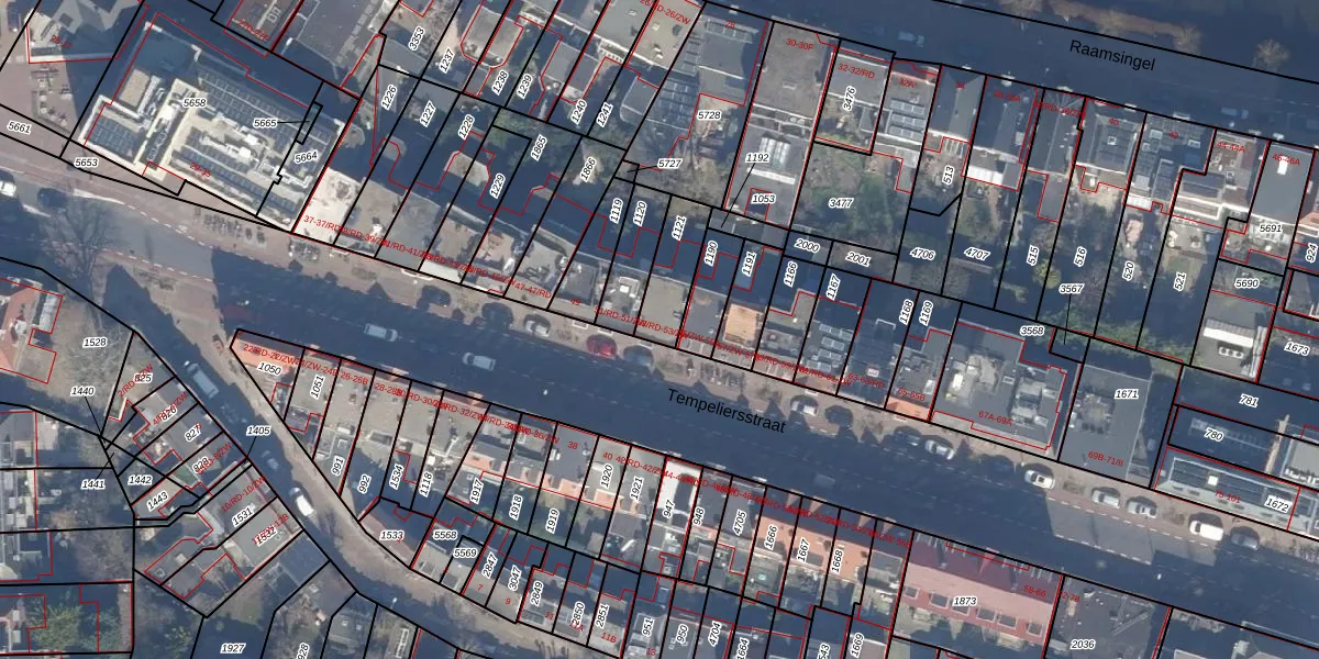 Tempeliersstraat 53-ZW is gelegen op kadastraal perceel HLM01I1121. Deze kadastrale aanduiding is uniek en wordt gebruikt door het Kadaster om eigendomsrechten en andere zakelijke rechten vast te leggen. Het perceel maakt onderdeel uit van de kadastrale gemeente Haarlem.