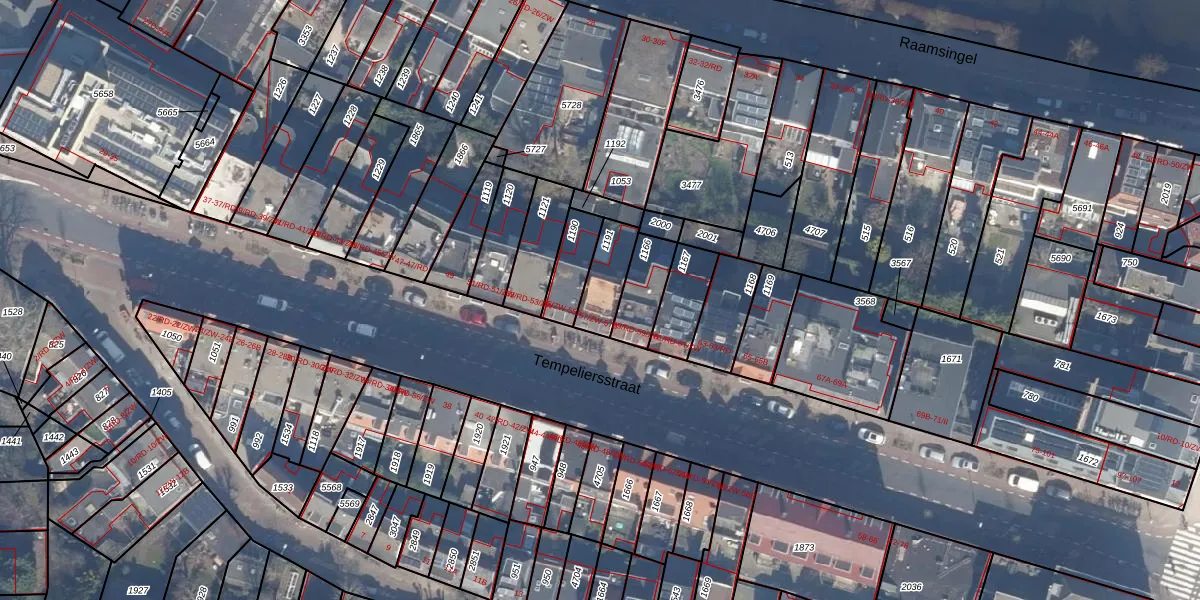 Het perceel waarop Tempeliersstraat 57-A staat heeft een oppervlakte van 116 m². Dit is een middelgroot perceel. De perceeloppervlakte wordt geregistreerd door het Kadaster. Gedetailleerde informatie over de maten van dit perceel kunt u vinden in het rapport Kadastrale kaart met maatvoering van Tempeliersstraat 57-A.