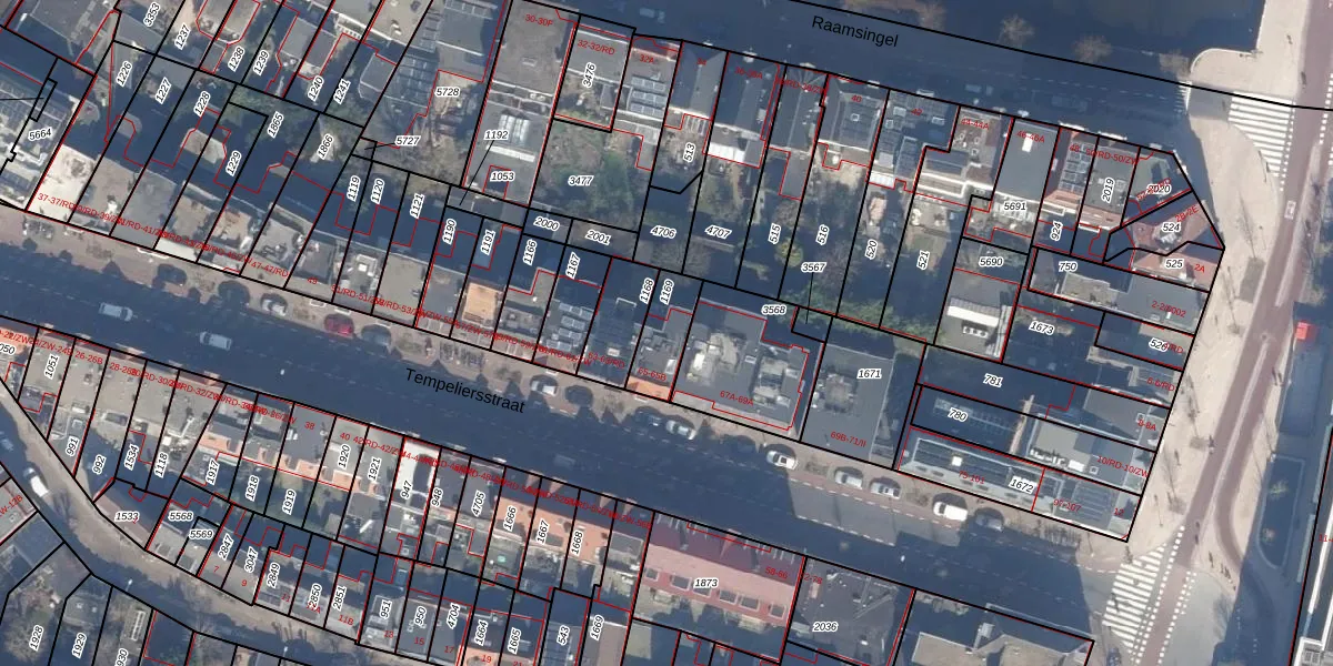 Het perceel waarop Tempeliersstraat 65-B staat heeft een oppervlakte van 125 m². Dit is een middelgroot perceel. De perceeloppervlakte wordt geregistreerd door het Kadaster. Gedetailleerde informatie over de maten van dit perceel kunt u vinden in het rapport Kadastrale kaart met maatvoering van Tempeliersstraat 65-B.