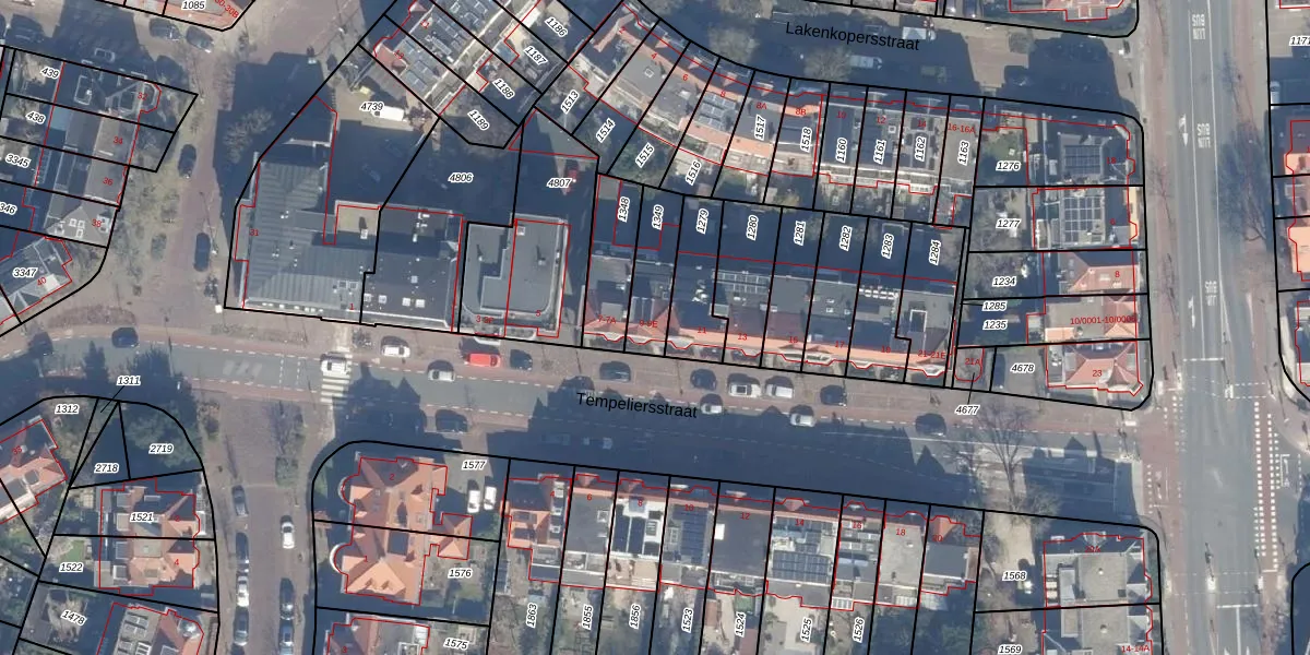 Het perceel waarop Tempeliersstraat 9-A staat heeft een oppervlakte van 157 m². Dit is een middelgroot perceel. De perceeloppervlakte wordt geregistreerd door het Kadaster. Gedetailleerde informatie over de maten van dit perceel kunt u vinden in het rapport Kadastrale kaart met maatvoering van Tempeliersstraat 9-A.