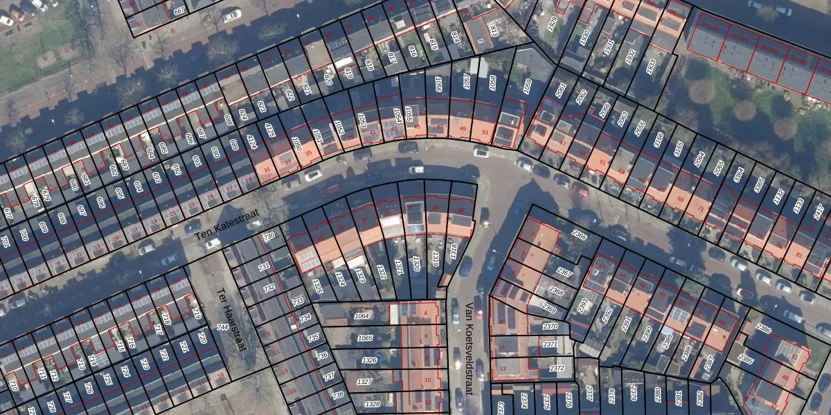 Het perceel waarop Ten Katestraat 34 staat heeft een oppervlakte van 151 m². Dit is een middelgroot perceel. De perceeloppervlakte wordt geregistreerd door het Kadaster. Gedetailleerde informatie over de maten van dit perceel kunt u vinden in het rapport Kadastrale kaart met maatvoering van Ten Katestraat 34.
