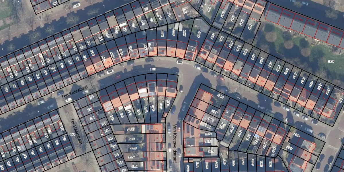 Gebruik de zoekbalk of klik op een perceel voor informatie over de adressen binnen dit perceel.