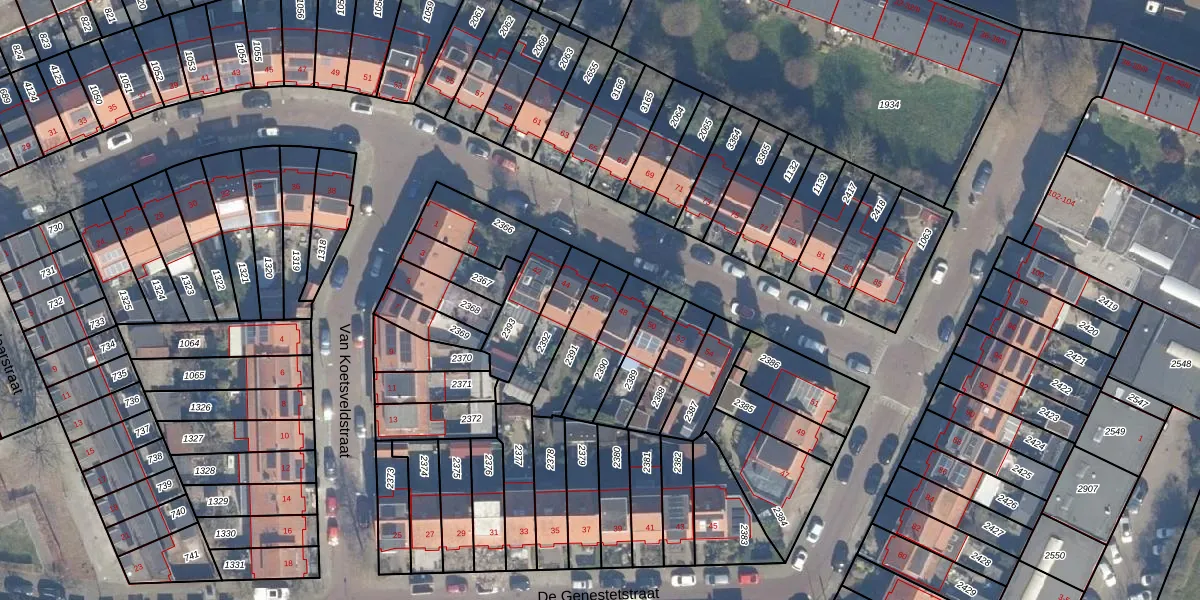 Het perceel waarop Ten Katestraat 46 staat heeft een oppervlakte van 143 m². Dit is een middelgroot perceel. De perceeloppervlakte wordt geregistreerd door het Kadaster. Gedetailleerde informatie over de maten van dit perceel kunt u vinden in het rapport Kadastrale kaart met maatvoering van Ten Katestraat 46.