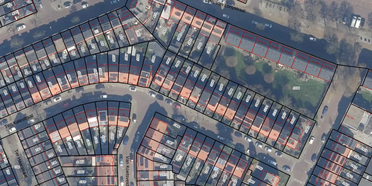 Het perceel waarop Ten Katestraat 61 staat heeft een oppervlakte van 118 m². Dit is een middelgroot perceel. De perceeloppervlakte wordt geregistreerd door het Kadaster. Gedetailleerde informatie over de maten van dit perceel kunt u vinden in het rapport Kadastrale kaart met maatvoering van Ten Katestraat 61.