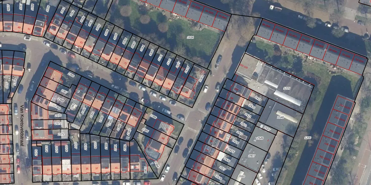Gebruik de zoekbalk of klik op een perceel voor informatie over de adressen binnen dit perceel.