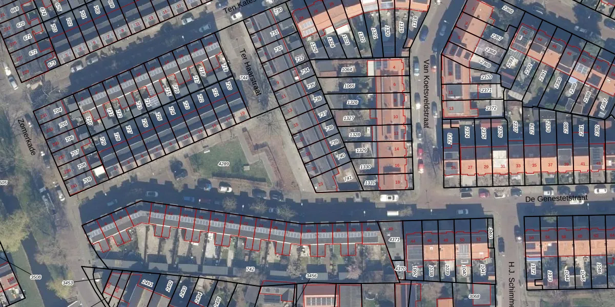 Gebruik de zoekbalk of klik op een perceel voor informatie over de adressen binnen dit perceel.