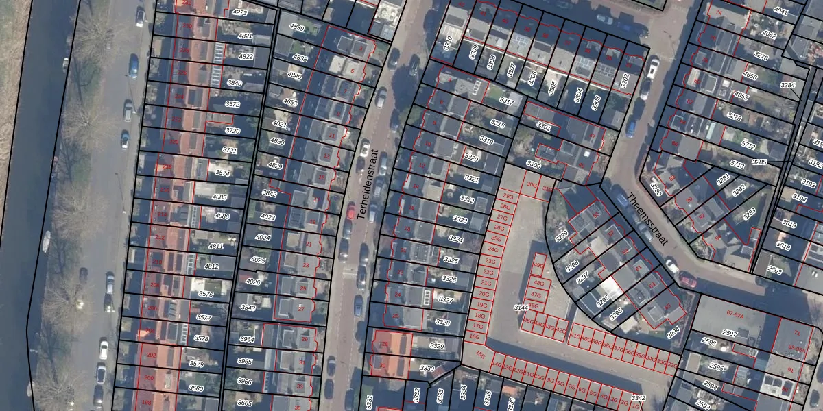 Terheidenstraat 16 is gelegen op kadastraal perceel HLM01I3323. Deze kadastrale aanduiding is uniek en wordt gebruikt door het Kadaster om eigendomsrechten en andere zakelijke rechten vast te leggen. Het perceel maakt onderdeel uit van de kadastrale gemeente Haarlem.