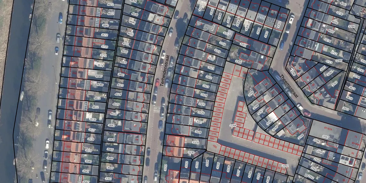 Terheidenstraat 18 is gelegen op kadastraal perceel HLM01I3324. Deze kadastrale aanduiding is uniek en wordt gebruikt door het Kadaster om eigendomsrechten en andere zakelijke rechten vast te leggen. Het perceel maakt onderdeel uit van de kadastrale gemeente Haarlem.