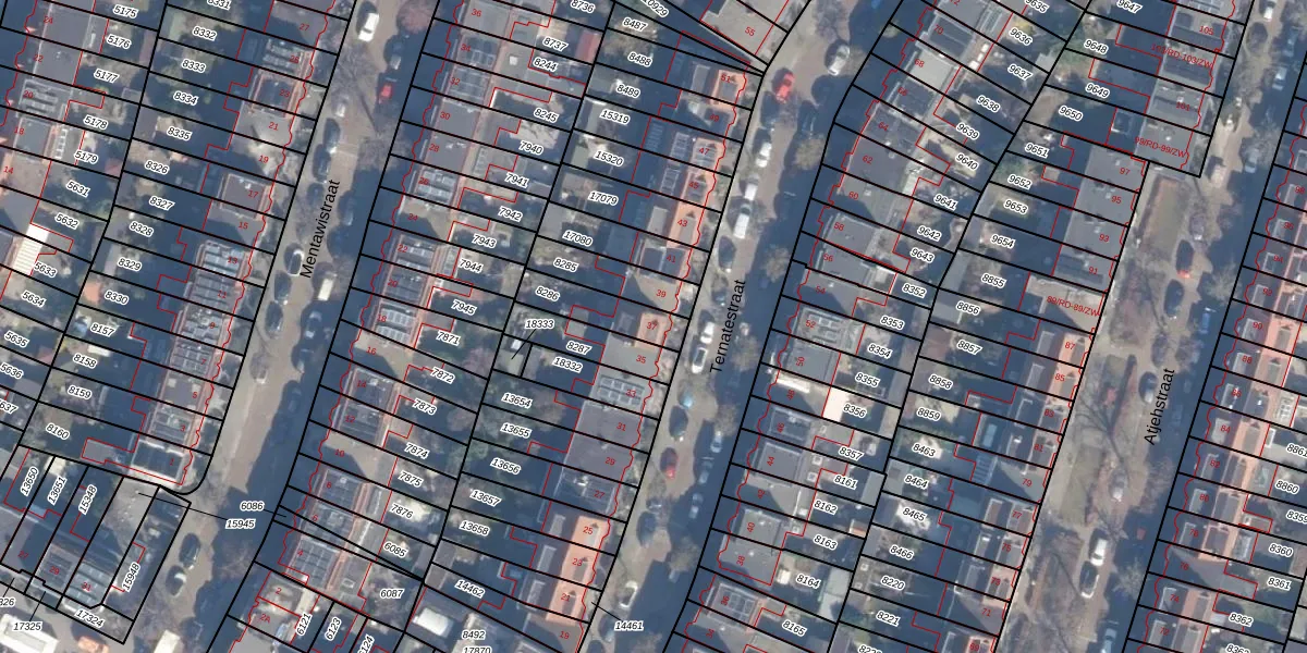 Het perceel waarop Ternatestraat 37 staat heeft een oppervlakte van 141 m². Dit is een middelgroot perceel. De perceeloppervlakte wordt geregistreerd door het Kadaster. Gedetailleerde informatie over de maten van dit perceel kunt u vinden in het rapport Kadastrale kaart met maatvoering van Ternatestraat 37.