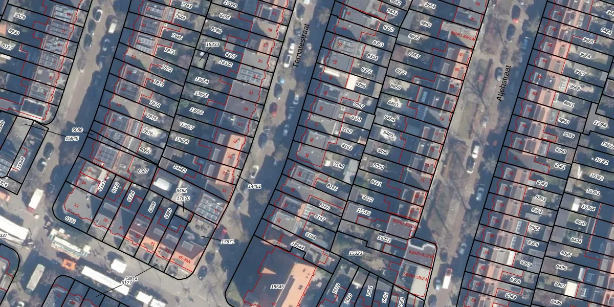 Het perceel waarop Ternatestraat 38 staat heeft een oppervlakte van 166 m². Dit is een middelgroot perceel. De perceeloppervlakte wordt geregistreerd door het Kadaster. Gedetailleerde informatie over de maten van dit perceel kunt u vinden in het rapport Kadastrale kaart met maatvoering van Ternatestraat 38.