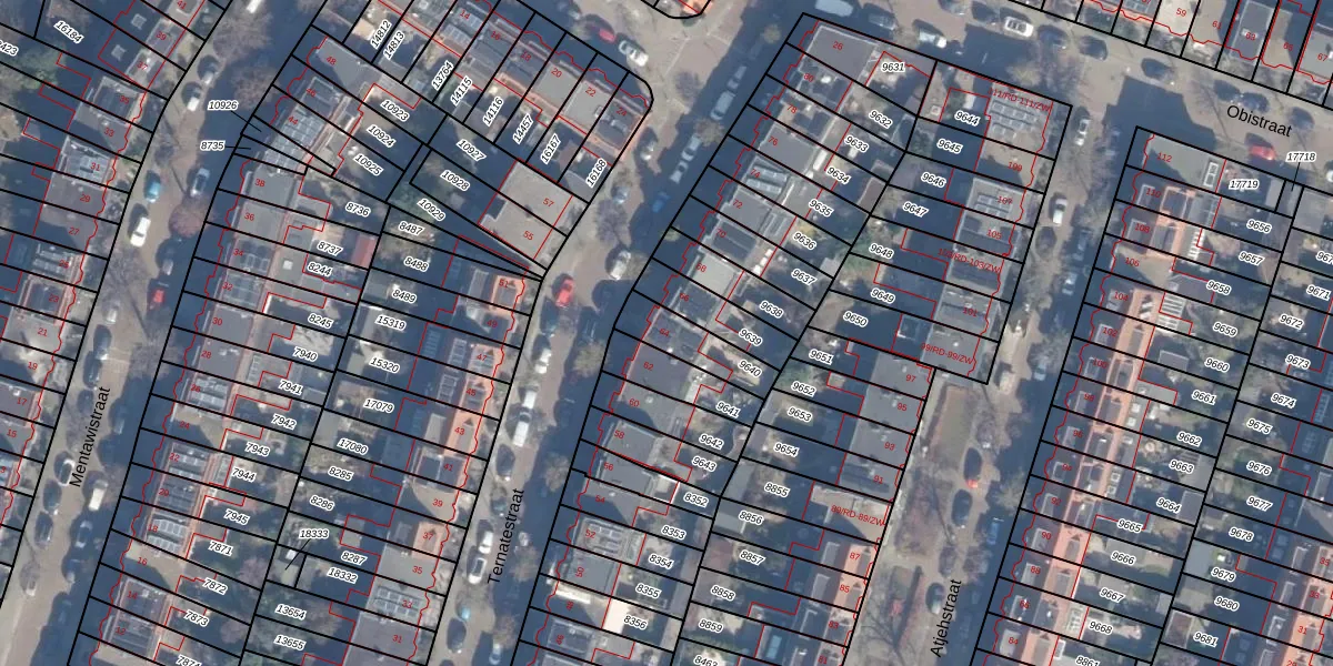 Het perceel waarop Ternatestraat 64 staat heeft een oppervlakte van 141 m². Dit is een middelgroot perceel. De perceeloppervlakte wordt geregistreerd door het Kadaster. Gedetailleerde informatie over de maten van dit perceel kunt u vinden in het rapport Kadastrale kaart met maatvoering van Ternatestraat 64.