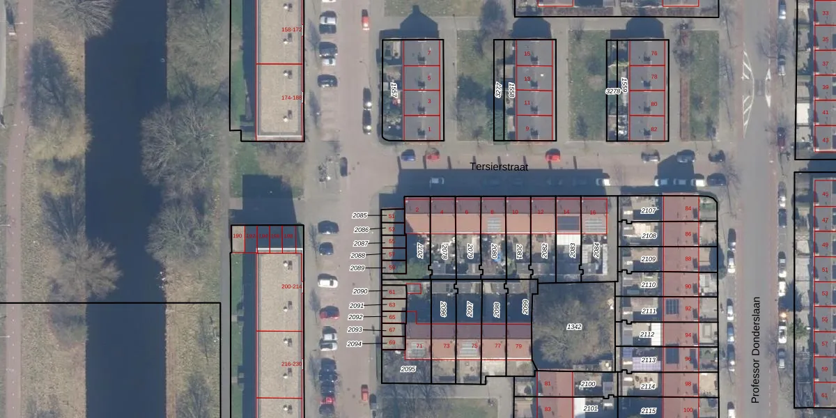Gebruik de zoekbalk of klik op een perceel voor informatie over de adressen binnen dit perceel.