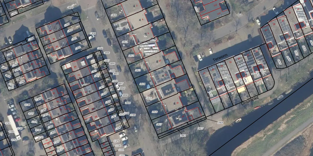 Het perceel waarop Terworm 12 staat heeft een oppervlakte van 315 m². Dit is een groot perceel. De perceeloppervlakte wordt geregistreerd door het Kadaster. Gedetailleerde informatie over de maten van dit perceel kunt u vinden in het rapport Kadastrale kaart met maatvoering van Terworm 12.