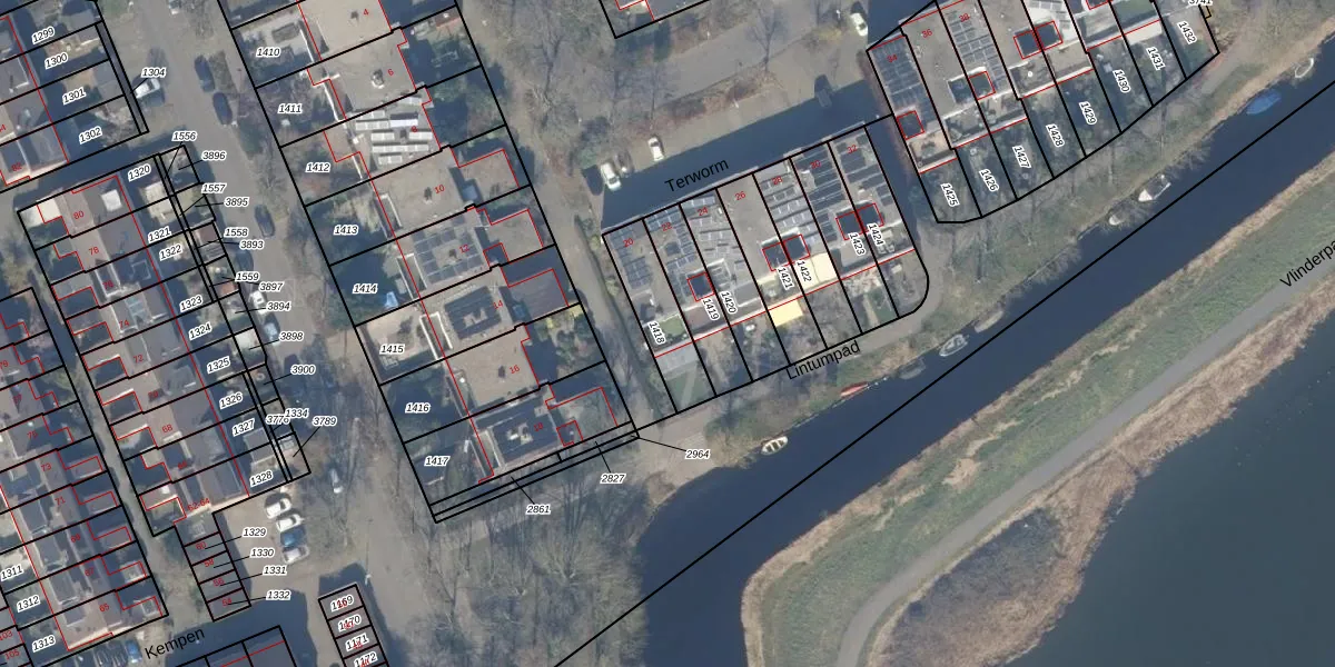 Het perceel waarop Terworm 20 staat heeft een oppervlakte van 181 m². Dit is een middelgroot perceel. De perceeloppervlakte wordt geregistreerd door het Kadaster. Gedetailleerde informatie over de maten van dit perceel kunt u vinden in het rapport Kadastrale kaart met maatvoering van Terworm 20.
