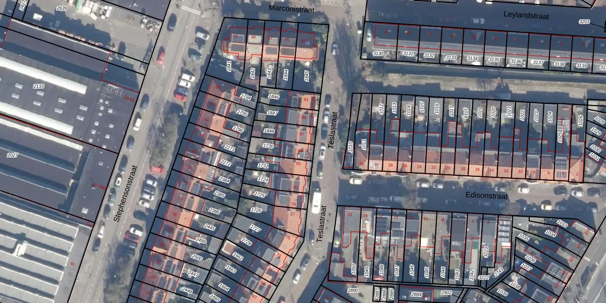 Het perceel waarop Teslastraat 85 staat heeft een oppervlakte van 118 m². Dit is een middelgroot perceel. De perceeloppervlakte wordt geregistreerd door het Kadaster. Gedetailleerde informatie over de maten van dit perceel kunt u vinden in het rapport Kadastrale kaart met maatvoering van Teslastraat 85.