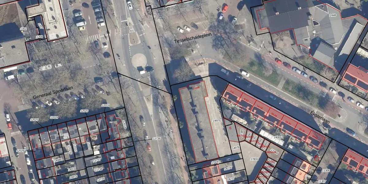 Tesselschadeplein 9 is gelegen op kadastraal perceel STN01B14975. Deze kadastrale aanduiding is uniek en wordt gebruikt door het Kadaster om eigendomsrechten en andere zakelijke rechten vast te leggen. Het perceel maakt onderdeel uit van de kadastrale gemeente Schoten.