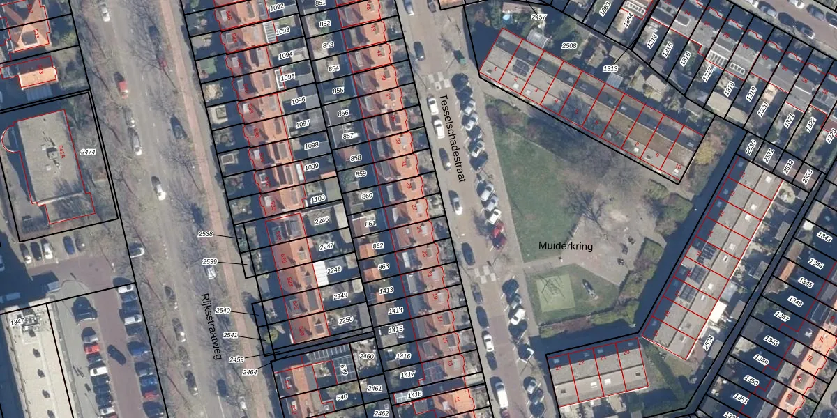 Het perceel waarop Tesselschadestraat 27 staat heeft een oppervlakte van 126 m². Dit is een middelgroot perceel. De perceeloppervlakte wordt geregistreerd door het Kadaster. Gedetailleerde informatie over de maten van dit perceel kunt u vinden in het rapport Kadastrale kaart met maatvoering van Tesselschadestraat 27.