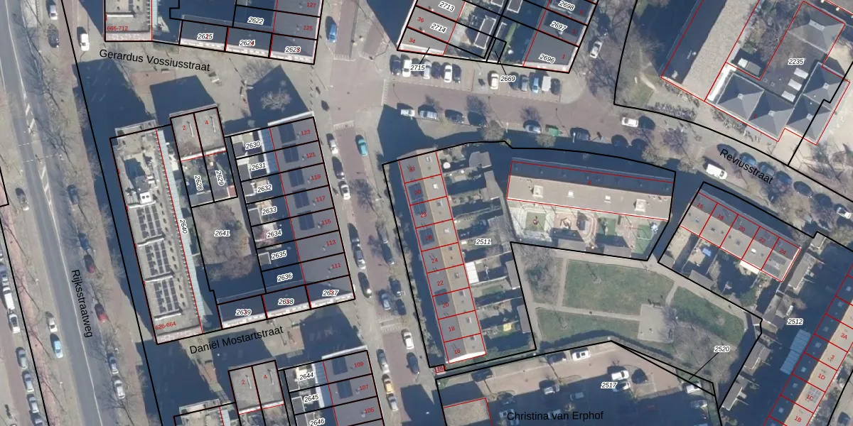Het perceel waarop Tesselschadestraat 28 staat heeft een oppervlakte van 2177 m². Dit is een zeer groot perceel. De perceeloppervlakte wordt geregistreerd door het Kadaster. Gedetailleerde informatie over de maten van dit perceel kunt u vinden in het rapport Kadastrale kaart met maatvoering van Tesselschadestraat 28.