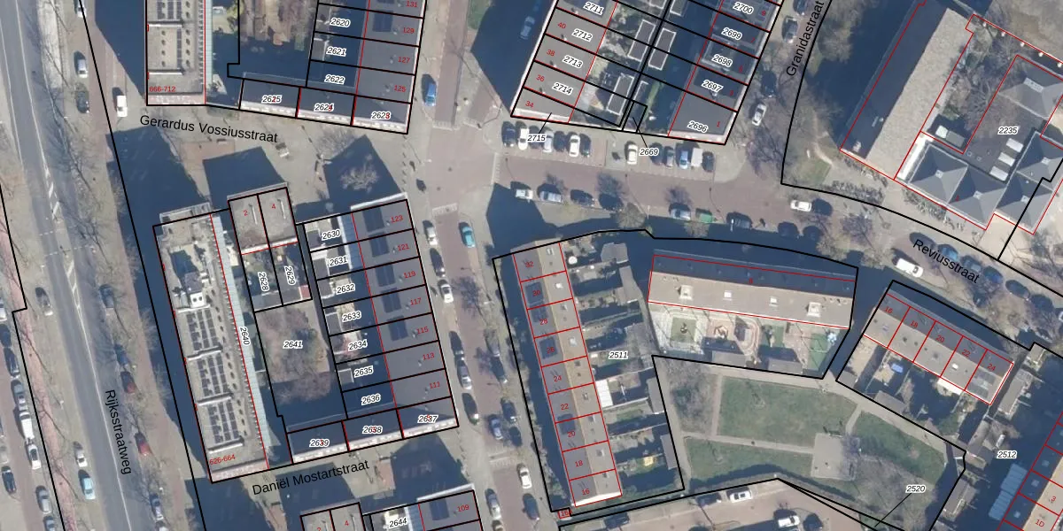 Het perceel waarop Tesselschadestraat 32 staat heeft een oppervlakte van 2177 m². Dit is een zeer groot perceel. De perceeloppervlakte wordt geregistreerd door het Kadaster. Gedetailleerde informatie over de maten van dit perceel kunt u vinden in het rapport Kadastrale kaart met maatvoering van Tesselschadestraat 32.