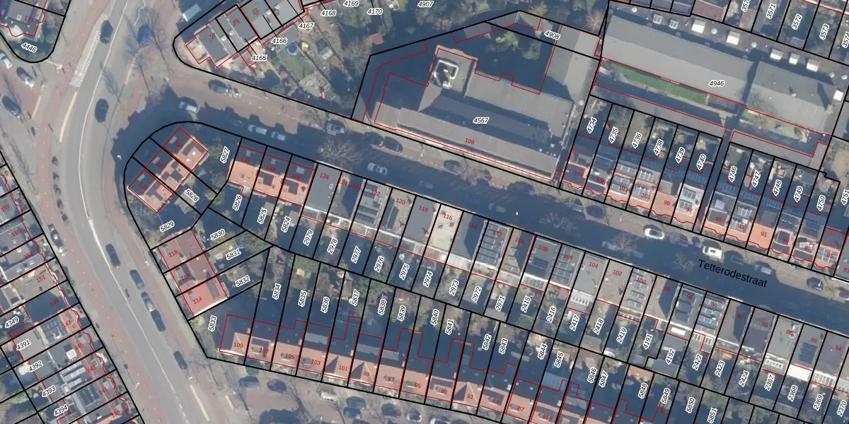 Het perceel waarop Tetterodestraat 118 staat heeft een oppervlakte van 132 m². Dit is een middelgroot perceel. De perceeloppervlakte wordt geregistreerd door het Kadaster. Gedetailleerde informatie over de maten van dit perceel kunt u vinden in het rapport Kadastrale kaart met maatvoering van Tetterodestraat 118.
