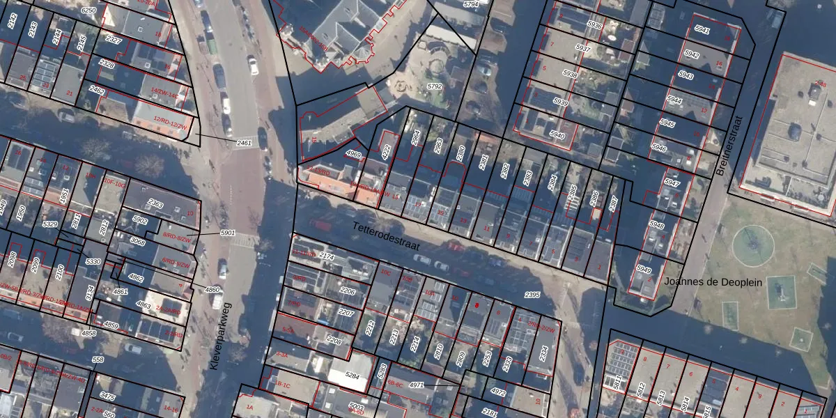 Tetterodestraat 17 is gelegen op kadastraal perceel HLM01A2963. Deze kadastrale aanduiding is uniek en wordt gebruikt door het Kadaster om eigendomsrechten en andere zakelijke rechten vast te leggen. Het perceel maakt onderdeel uit van de kadastrale gemeente Haarlem.