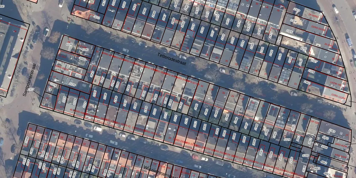 Tetterodestraat 34-RD is gelegen op kadastraal perceel HLM01A2304. Deze kadastrale aanduiding is uniek en wordt gebruikt door het Kadaster om eigendomsrechten en andere zakelijke rechten vast te leggen. Het perceel maakt onderdeel uit van de kadastrale gemeente Haarlem.
