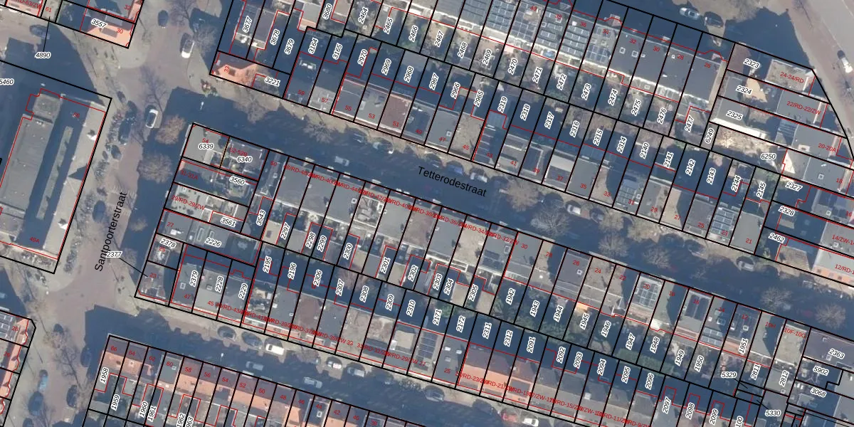 Tetterodestraat 38-ZW is gelegen op kadastraal perceel HLM01A2302. Deze kadastrale aanduiding is uniek en wordt gebruikt door het Kadaster om eigendomsrechten en andere zakelijke rechten vast te leggen. Het perceel maakt onderdeel uit van de kadastrale gemeente Haarlem.
