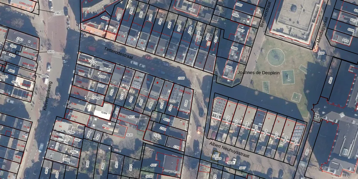 Het perceel waarop Tetterodestraat 4 staat heeft een oppervlakte van 115 m². Dit is een middelgroot perceel. De perceeloppervlakte wordt geregistreerd door het Kadaster. Gedetailleerde informatie over de maten van dit perceel kunt u vinden in het rapport Kadastrale kaart met maatvoering van Tetterodestraat 4.