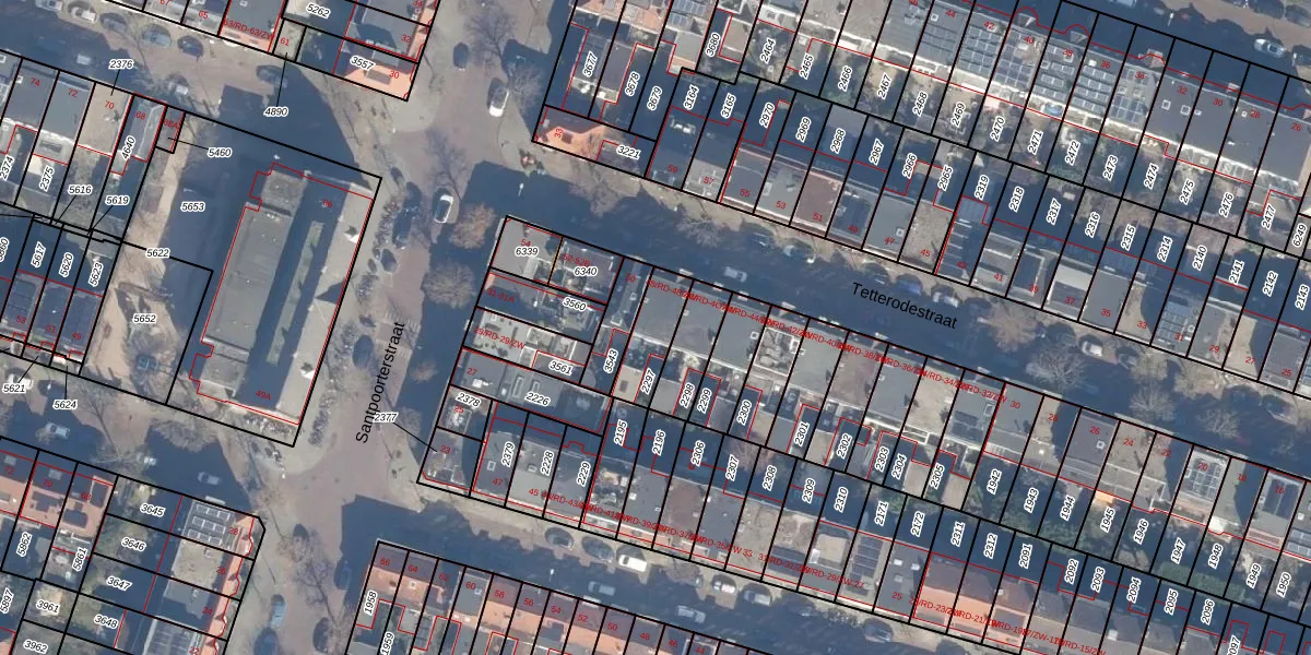 Tetterodestraat 48-RD is gelegen op kadastraal perceel HLM01A2297. Deze kadastrale aanduiding is uniek en wordt gebruikt door het Kadaster om eigendomsrechten en andere zakelijke rechten vast te leggen. Het perceel maakt onderdeel uit van de kadastrale gemeente Haarlem.