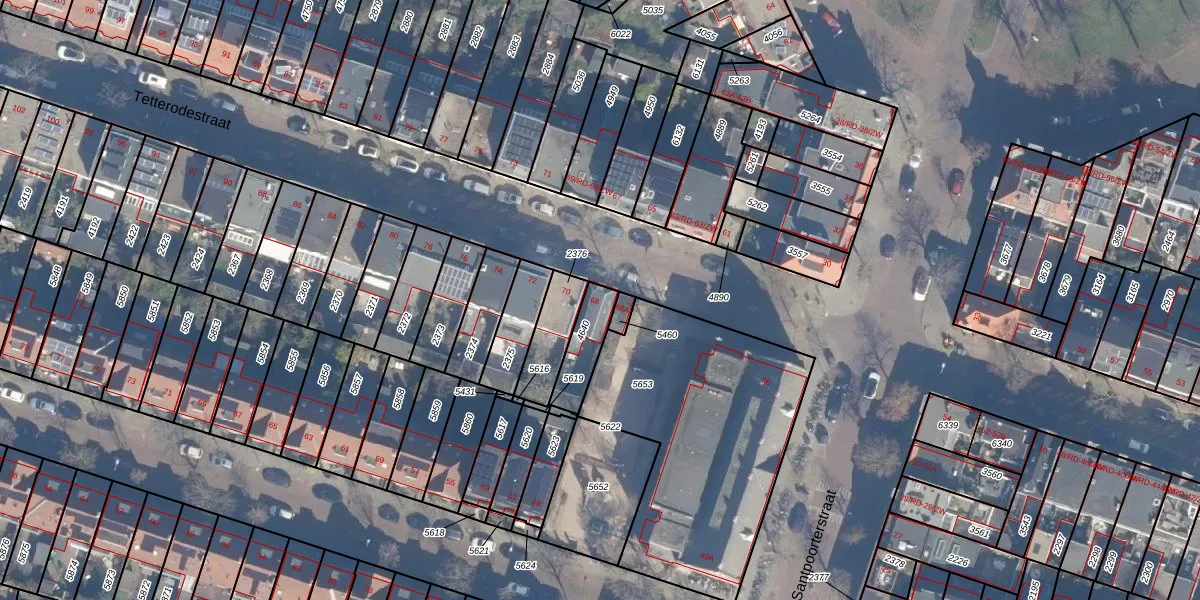 Het perceel waarop Tetterodestraat 68 staat heeft een oppervlakte van 116 m². Dit is een middelgroot perceel. De perceeloppervlakte wordt geregistreerd door het Kadaster. Gedetailleerde informatie over de maten van dit perceel kunt u vinden in het rapport Kadastrale kaart met maatvoering van Tetterodestraat 68.