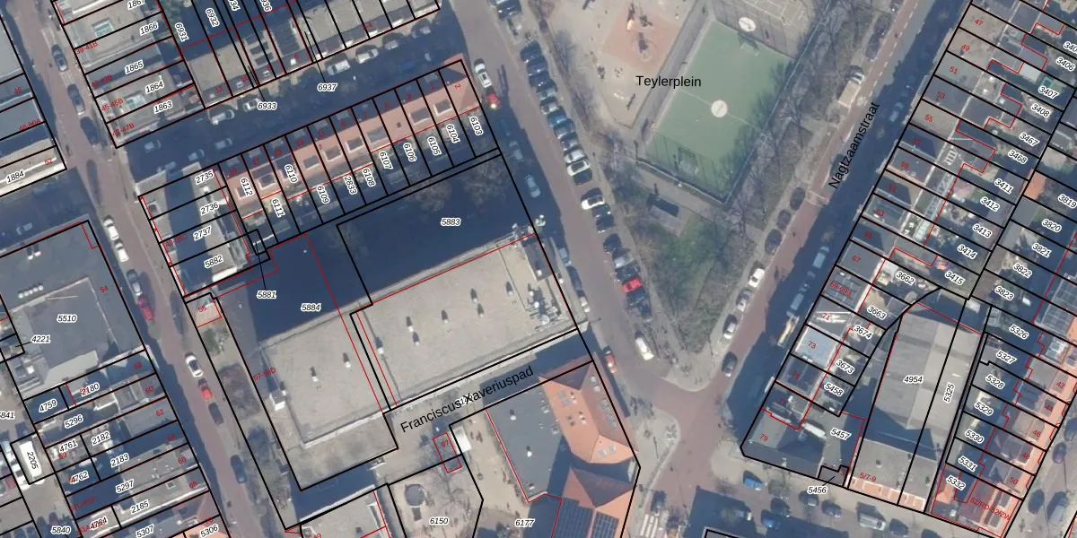 Teylerplein 114 is gelegen op kadastraal perceel HLM01E5883. Deze kadastrale aanduiding is uniek en wordt gebruikt door het Kadaster om eigendomsrechten en andere zakelijke rechten vast te leggen. Het perceel maakt onderdeel uit van de kadastrale gemeente Haarlem.