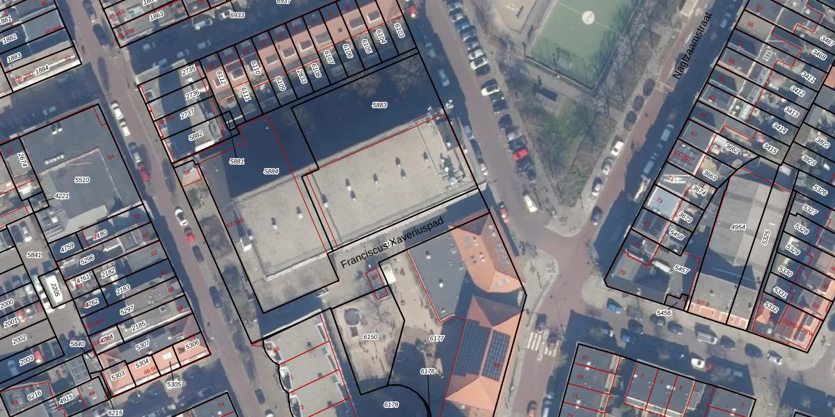 Het adres ligt op het perceel HLM01-E-5883, dat zich in de kadastrale gemeente Haarlem bevindt. De oppervlakte van het perceel is 1273 m². Dat is groter dan gemiddeld in Haarlem, waar de gemiddelde perceeloppervlakte op 328,37 m² ligt. Het grootste perceel in de kadastrale gemeente is 13,9 ha. Het kleinste perceel heeft een oppervlakte van 0 m². Op het perceel zijn 68 adressen aanwezig. In de Basisregistratie Kadaster (BRK) werden de grenzen van het perceel geregistreerd op 04-10-2001.
