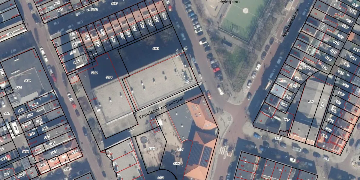 Teylerplein 24 is gelegen op kadastraal perceel HLM01E5883. Deze kadastrale aanduiding is uniek en wordt gebruikt door het Kadaster om eigendomsrechten en andere zakelijke rechten vast te leggen. Het perceel maakt onderdeel uit van de kadastrale gemeente Haarlem.