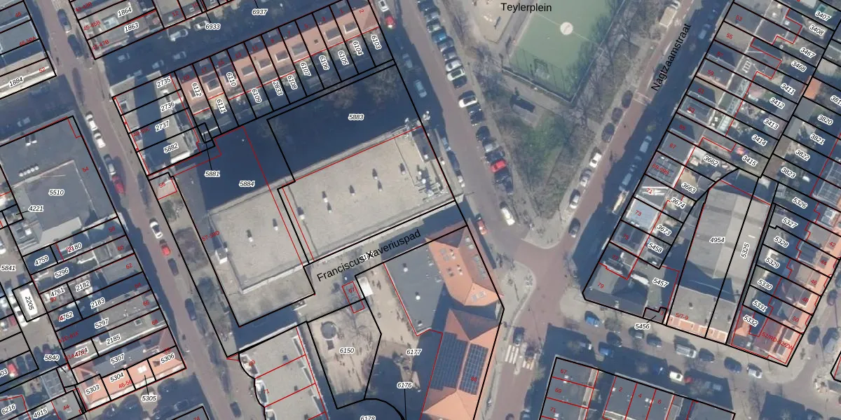 Het adres ligt op het perceel HLM01-E-5883, dat zich in de kadastrale gemeente Haarlem bevindt. De oppervlakte van het perceel is 1273 m². Dat is groter dan gemiddeld in Haarlem, waar de gemiddelde perceeloppervlakte op 328,37 m² ligt. Het grootste perceel in de kadastrale gemeente is 13,9 ha. Het kleinste perceel heeft een oppervlakte van 0 m². Op het perceel liggen in totaal 68 adressen. In de Basisregistratie Kadaster (BRK) werden de grenzen van het perceel geregistreerd op 04-10-2001.