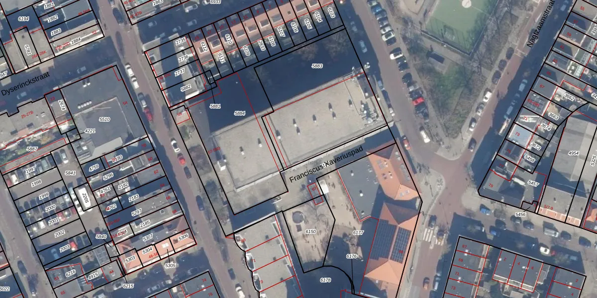 Het adres ligt op het perceel HLM01-E-5883, dat zich in de kadastrale gemeente Haarlem bevindt. De gemiddelde perceeloppervlakte in de kadastrale gemeente Haarlem is 328,37 m². Dit perceel is met zijn 1273 m² dus groter dan gemiddeld. Het kleinste perceel in de kadastrale gemeente is 0 m² groot. De grootste perceeloppervlakte is 13,9 ha. Op het perceel liggen in totaal 68 adressen. De laatste wijziging in het de Basisregistratie Kadaster (BRK) was op 04-10-2001.