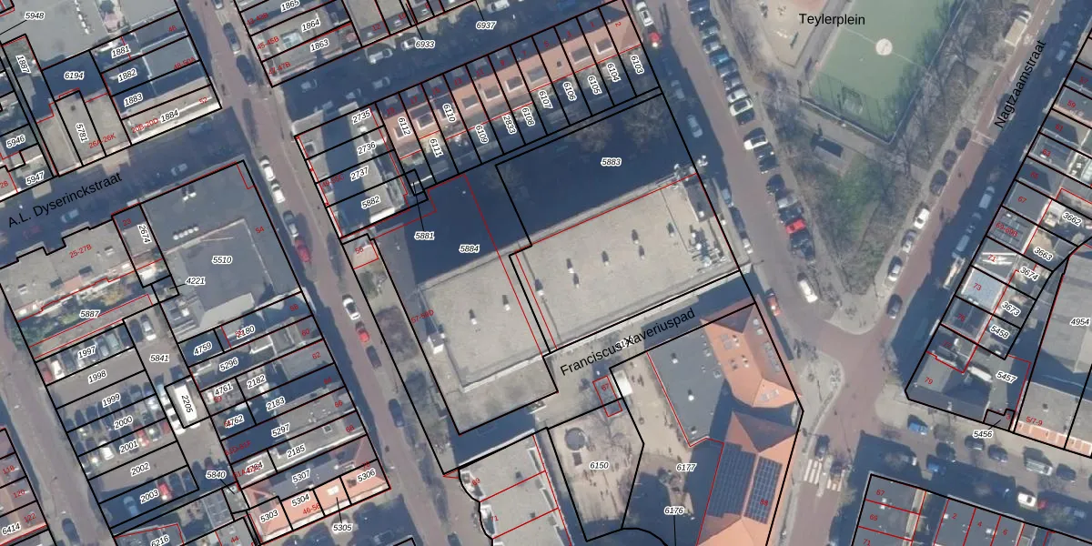 Teylerplein 90 is gelegen op kadastraal perceel HLM01E5883. Deze kadastrale aanduiding is uniek en wordt gebruikt door het Kadaster om eigendomsrechten en andere zakelijke rechten vast te leggen. Het perceel maakt onderdeel uit van de kadastrale gemeente Haarlem.