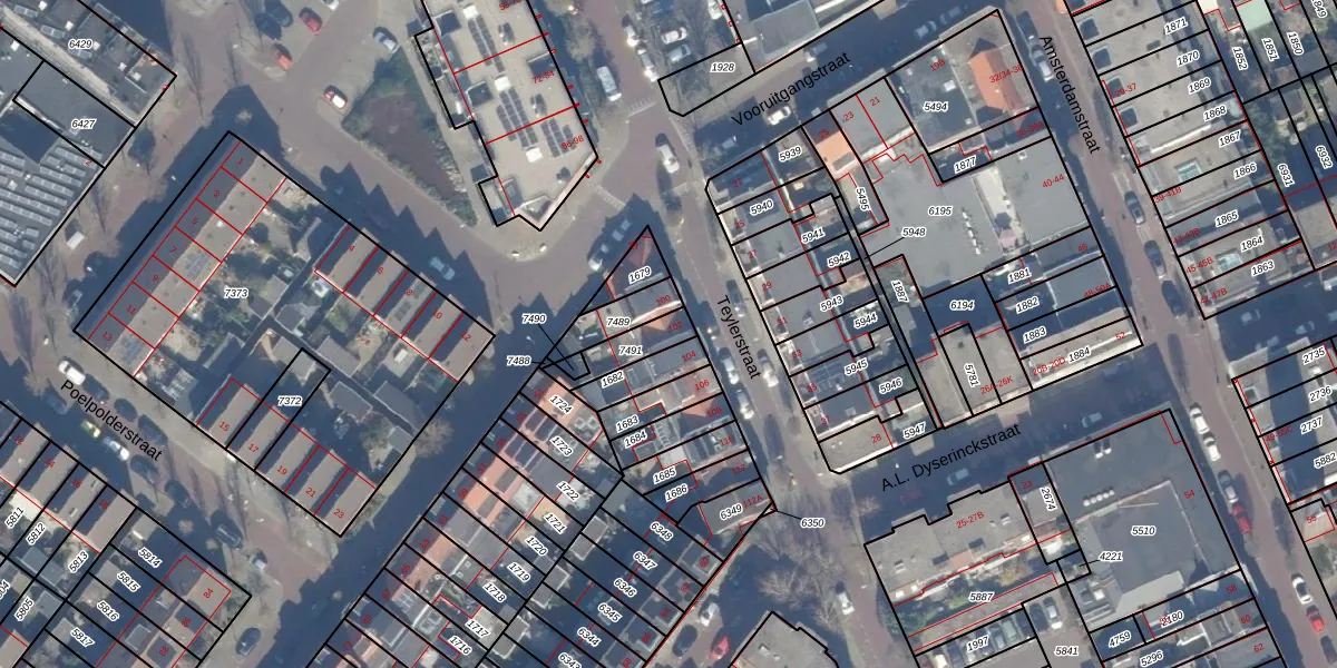 Teylerstraat 102 is gelegen op kadastraal perceel HLM01E7491. Deze kadastrale aanduiding is uniek en wordt gebruikt door het Kadaster om eigendomsrechten en andere zakelijke rechten vast te leggen. Het perceel maakt onderdeel uit van de kadastrale gemeente Haarlem.