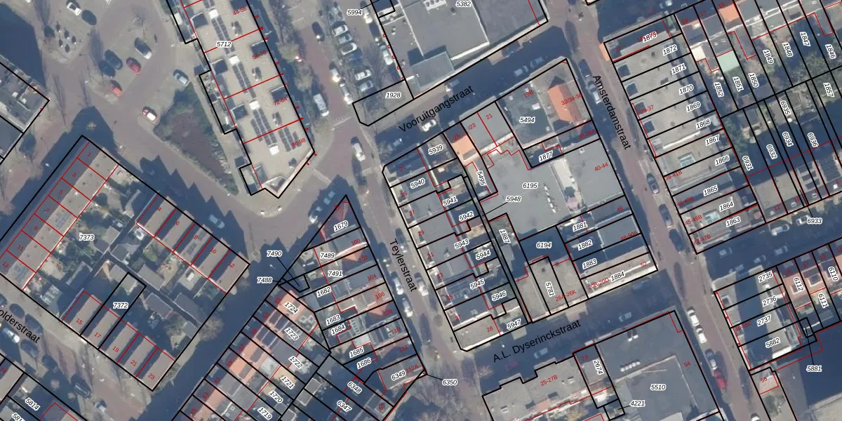 Het perceel waarop Teylerstraat 27 staat heeft een oppervlakte van 90 m². Dit is een klein perceel. De perceeloppervlakte wordt geregistreerd door het Kadaster. Gedetailleerde informatie over de maten van dit perceel kunt u vinden in het rapport Kadastrale kaart met maatvoering van Teylerstraat 27.