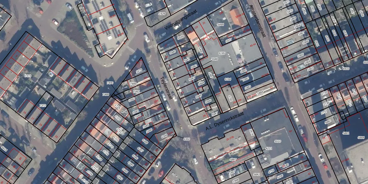 Teylerstraat 33 is gelegen op kadastraal perceel HLM01E5944. Deze kadastrale aanduiding is uniek en wordt gebruikt door het Kadaster om eigendomsrechten en andere zakelijke rechten vast te leggen. Het perceel maakt onderdeel uit van de kadastrale gemeente Haarlem.